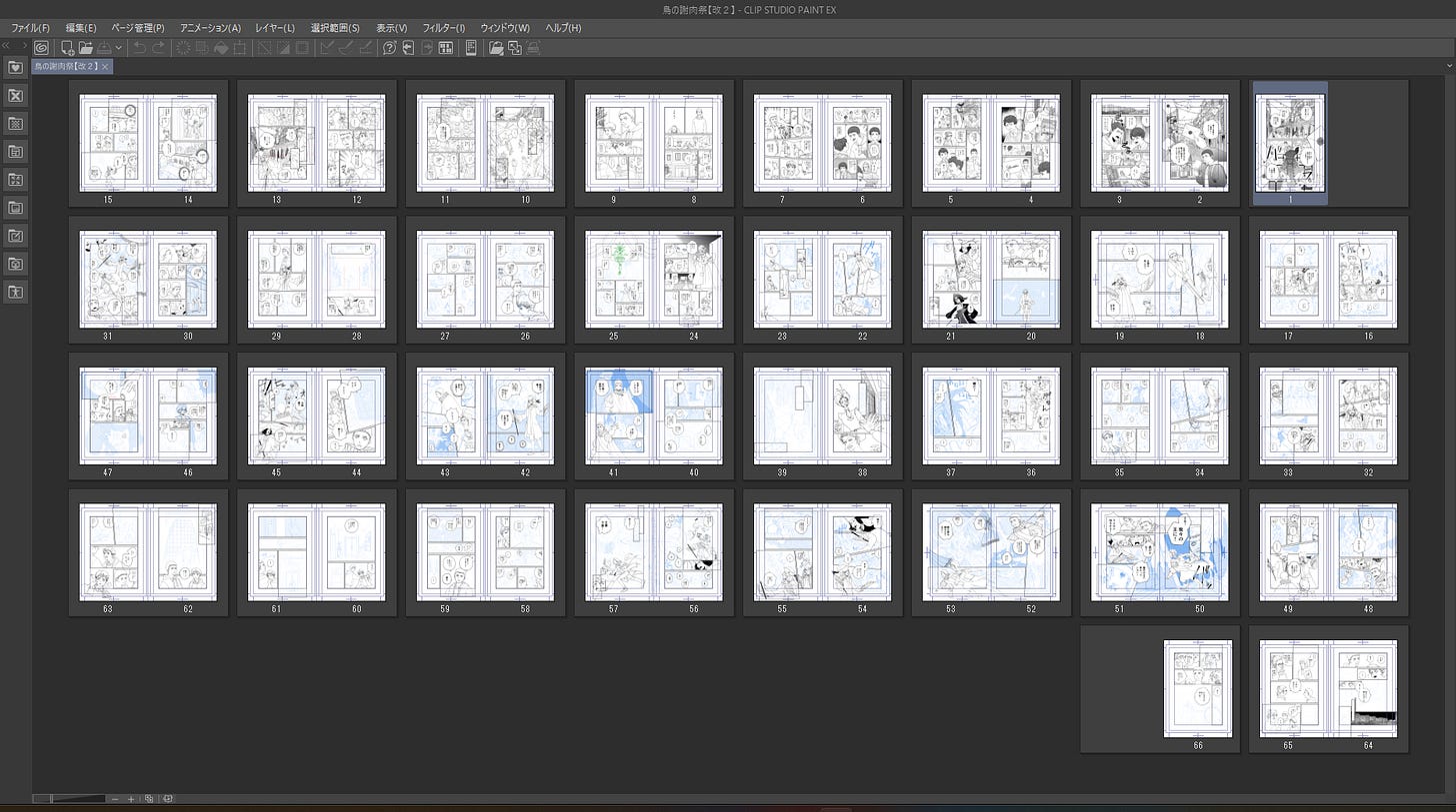 ネームが上がったの6月なんですが、私の仕事は案件が違うにも関わらず毎年必ず下半期たてこむので(逆になぜか上半期は暇がち)仕事に全振りしており、自主制作の進捗が遅い。